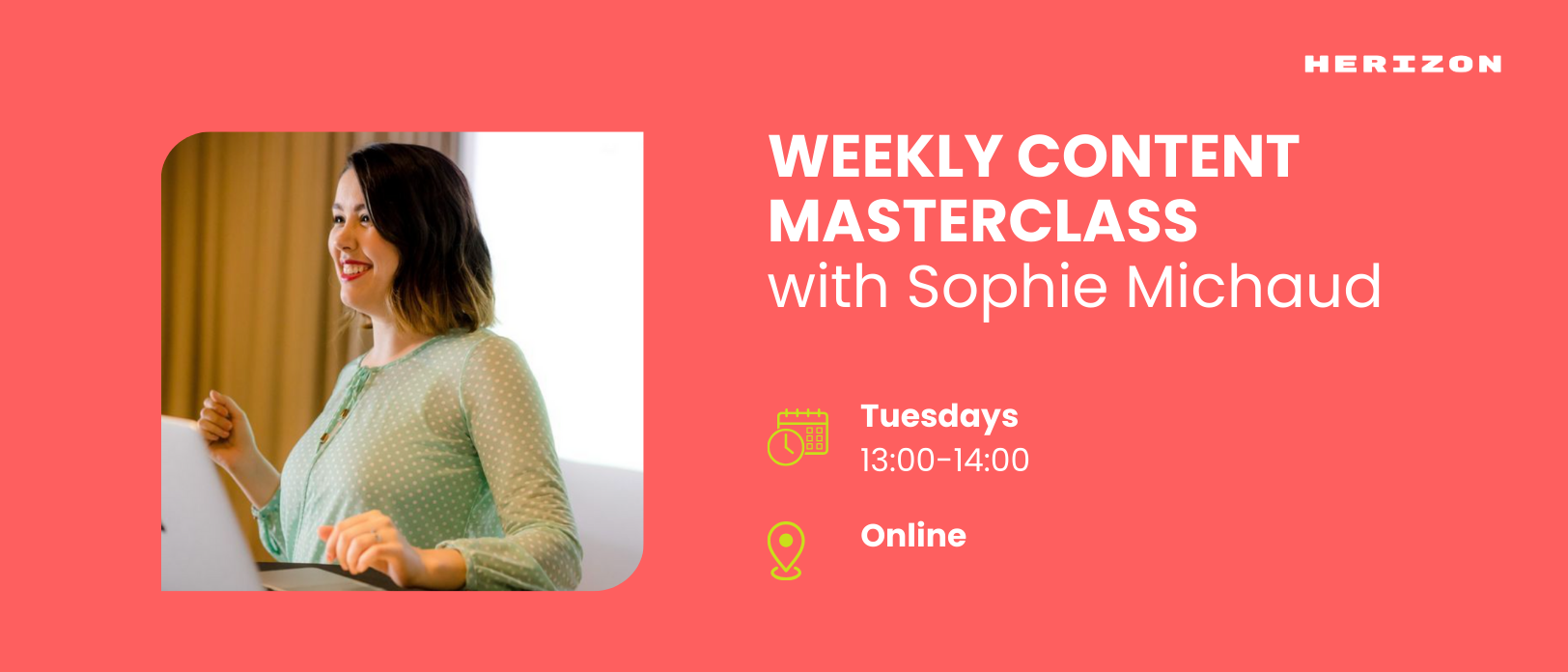 Our weekly content master class with Sophie Michaud, a Content Strategist, Founder, and Herizon Growth Hacking alumna, is drawing to a close on December 17th.