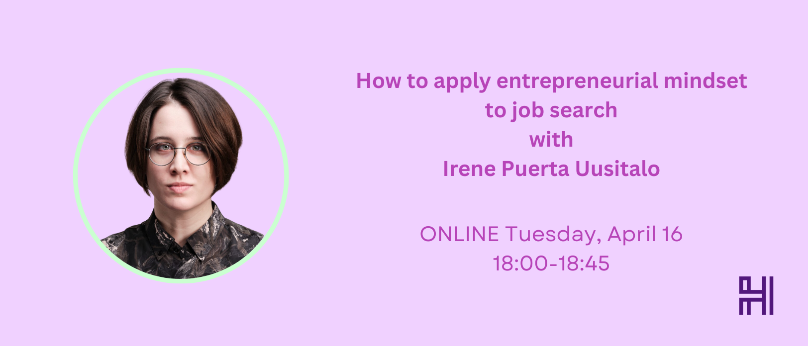 - ONLINE How to apply entrepreneurial mindset to job search with Irene Puerta Uusitalo (event link)
