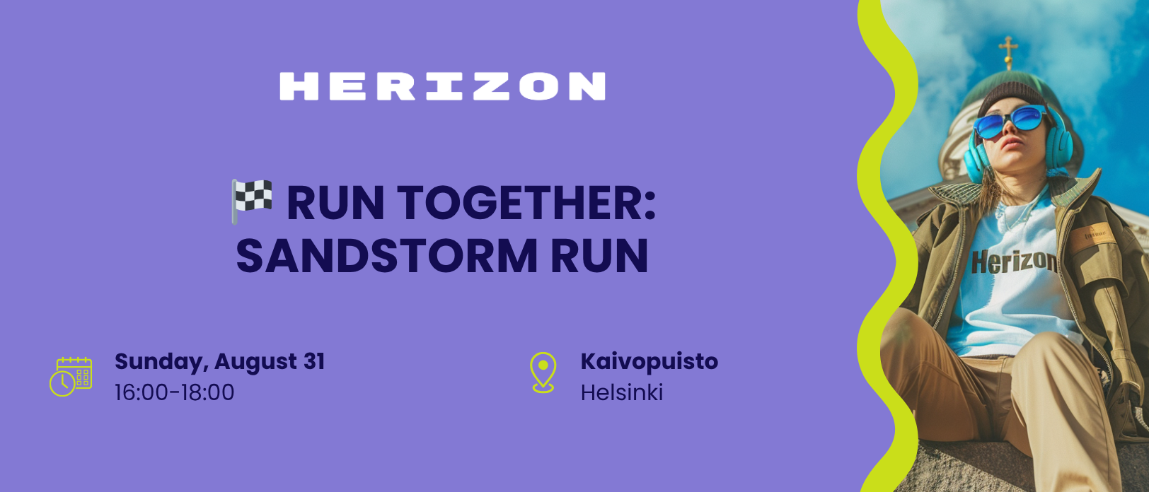 The Herizon team is inviting you to join our team at the SANDSTORM RUN event, where we run the iconic route depicted in Darude’s Sandstorm music video