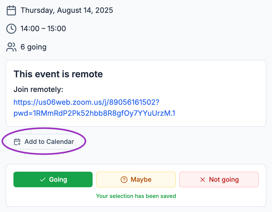 Remember to save your events to your calendar