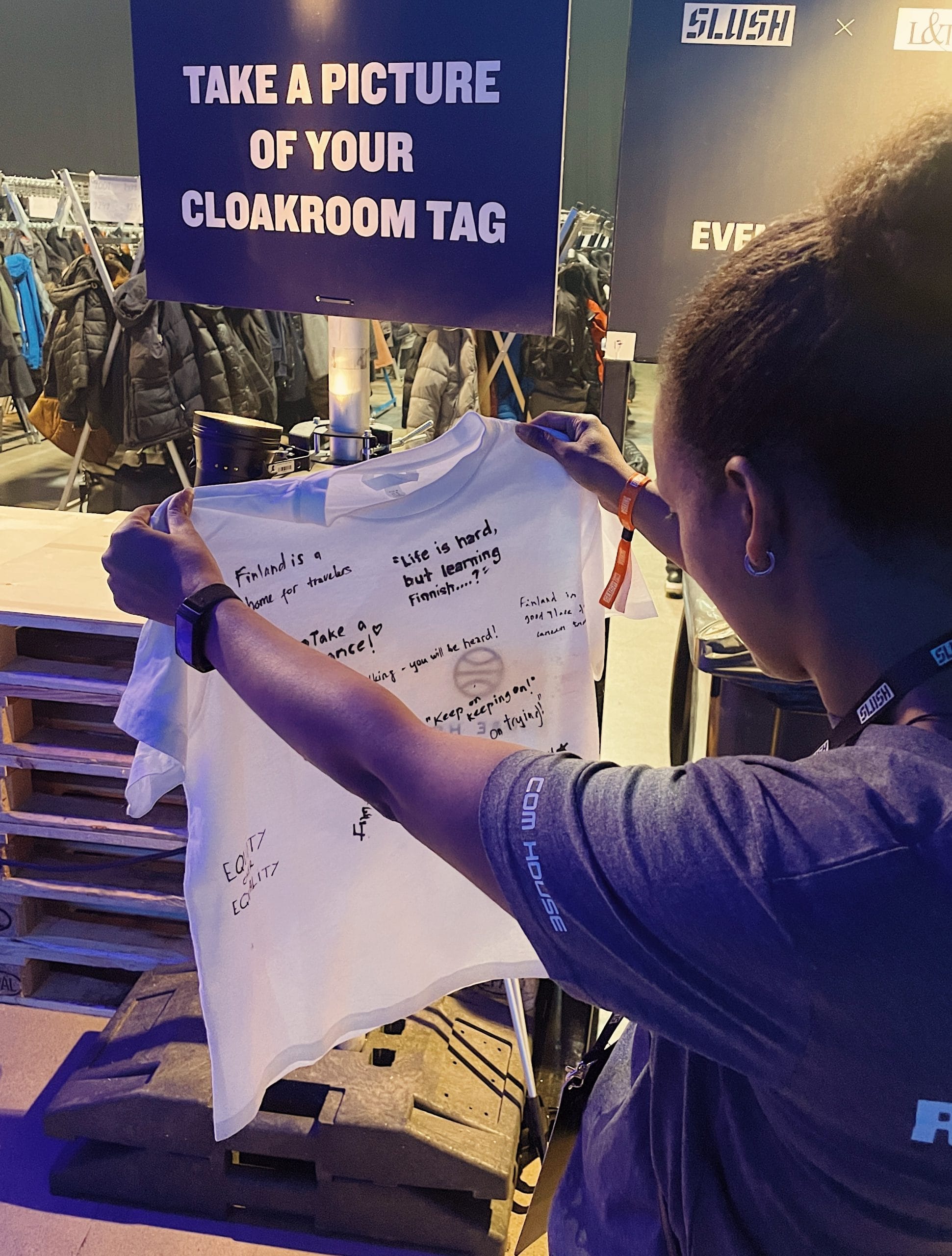 - Met many Slush volunteers. Collected quotes of being an international talent in Finland from them for a T-shirt – and the quotes are priceless.