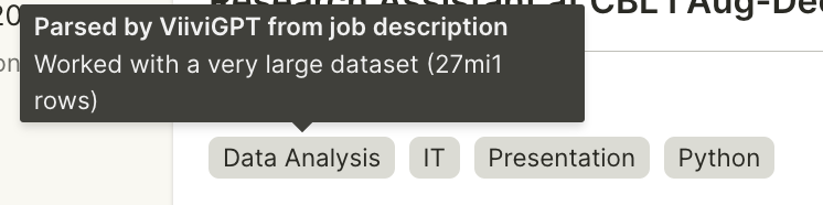 Ratkaisu: Työkalu analysoi työpaikkailmoituksia ja antamalla parannusehdotuksia hakemuksiin, mikä auttaa kirjoittamaan tehokkaampia ja relevantimpia työhakemuksia.